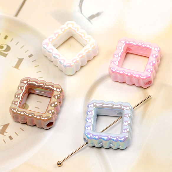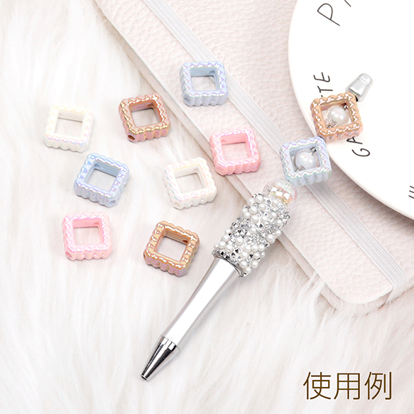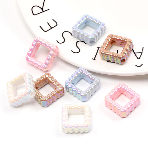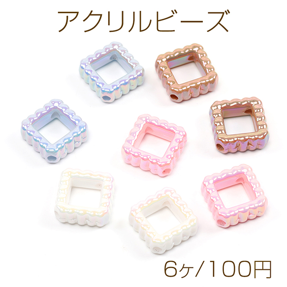 アクリルビーズ ビーズフレーム カスタムペン キーホルダー制作におすすめ スクエア型 2穴あり 約18×18mm (6ヶ)