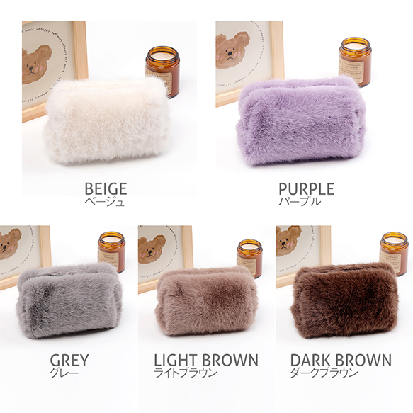 ファーポーチ フェイクファーポーチ もふもふポーチ コスメポーチ ミニポーチ 小物入れ ファー収納バッグ (1個)