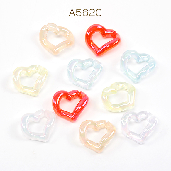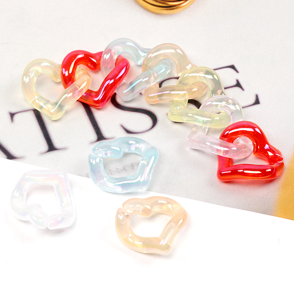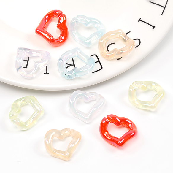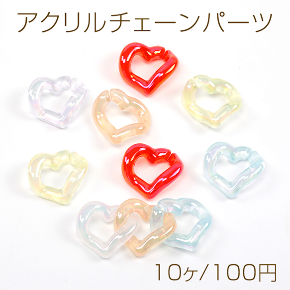 アクリルチェーンパーツ クリアチェーンパーツ 切れ目あり 簡単につなげる ハート型 ランダム発送 約18×20mm (10ヶ)