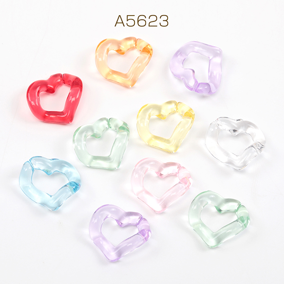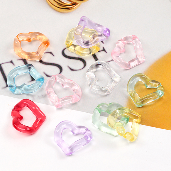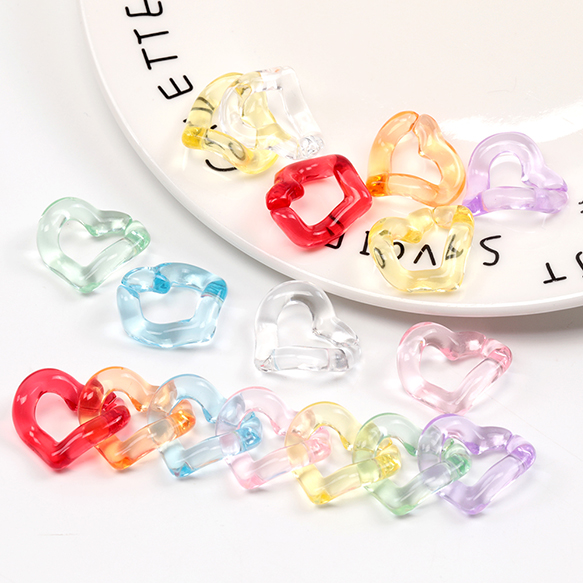 アクリルチェーンパーツ クリアチェーンパーツ 切れ目あり 簡単につなげる ハート型 ランダム発送 約18×20mm (10ヶ)