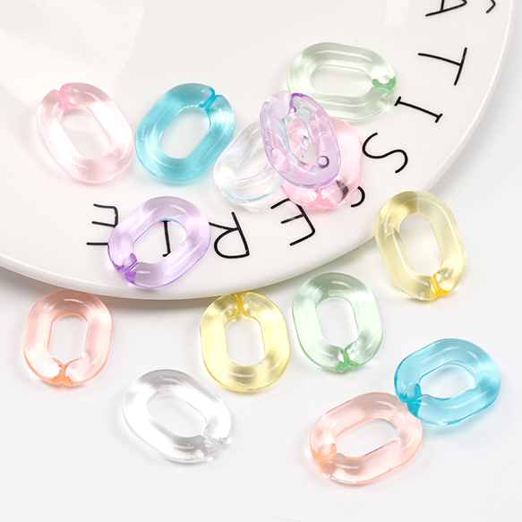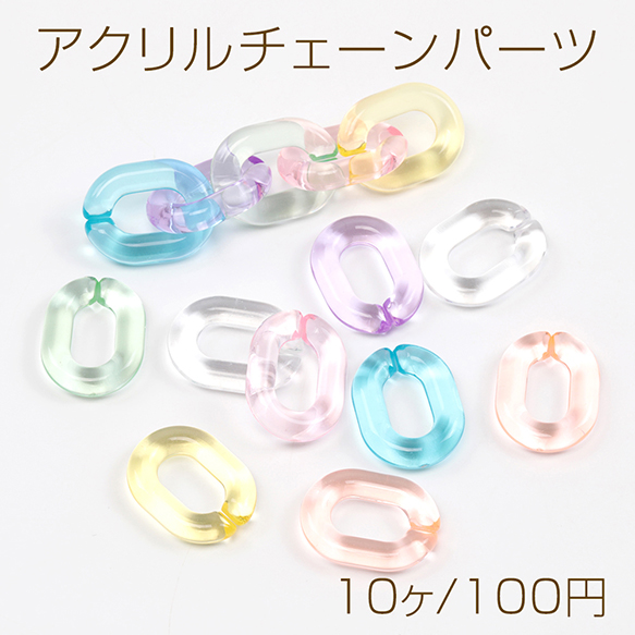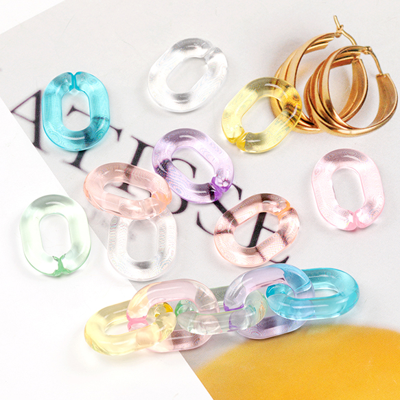 アクリルチェーンパーツ クリアカラーチェーンパーツ 切れ目あり 簡単につなげる オーバル型 約18×24mm (10ヶ)