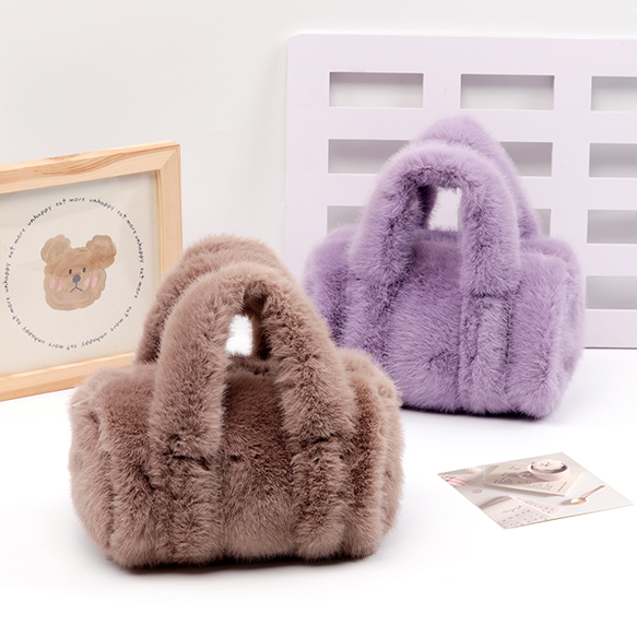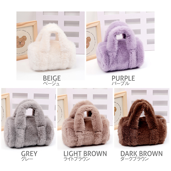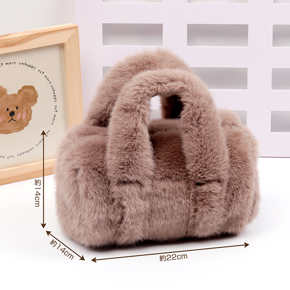 ファーバッグ フェイクファートートバッグ ボストンバッグ 秋冬もふもふハンドバッグ 全5色 約14×14×22cm (1個)