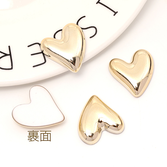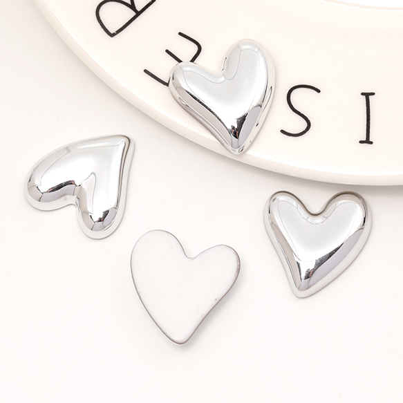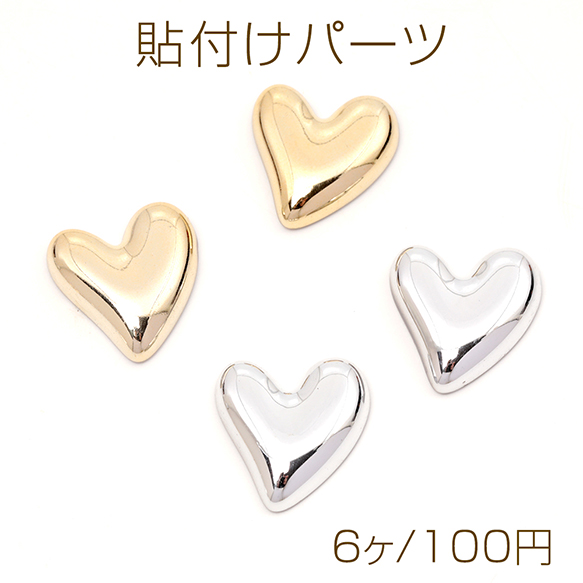 貼り付けパーツ 軽量 ハート型 軽量 アクリル製 デコパーツ アクリルカボション メッキ加工 約20×22mm(6ケ)
