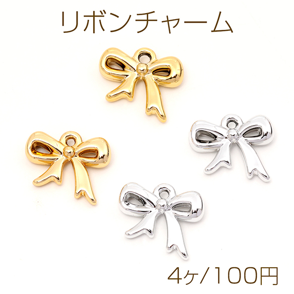 リボンチャーム 軽量 アクリル製 りぼんチャーム キーホルダー ストラップ制作におすすめ 1カン 約16×20mm(4ケ)