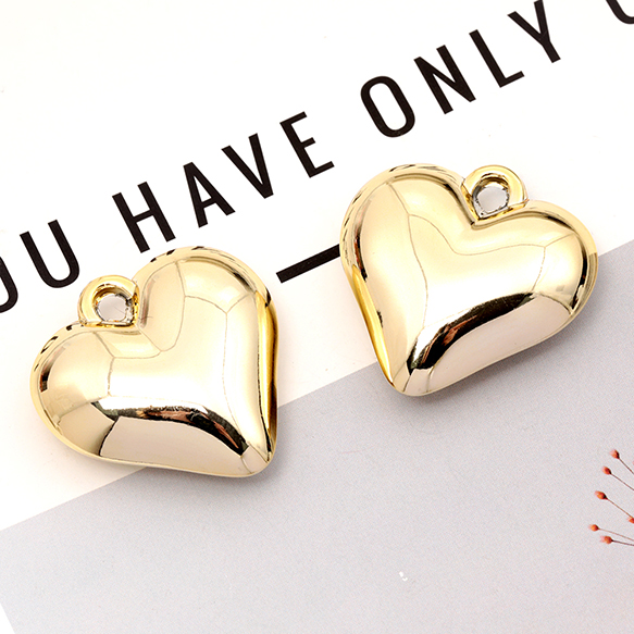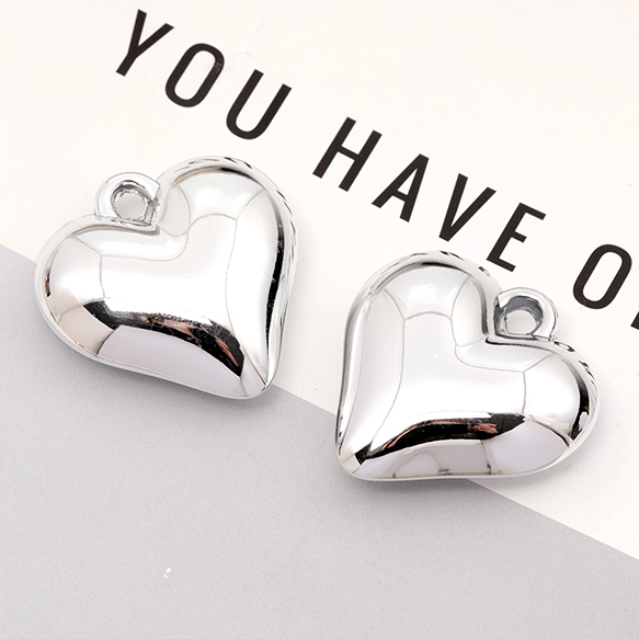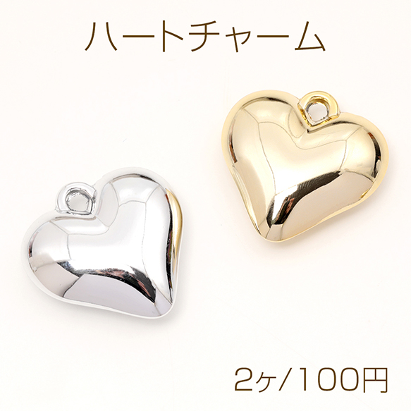 ハートチャーム 軽量 アクリル製 ぷっくりしたメタル調ハートチャーム ストラップ制作におすすめ 1カン 約34×35mm(2ケ)