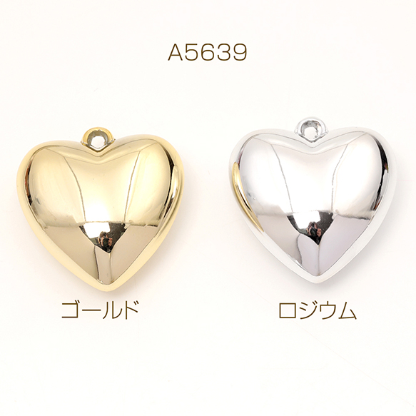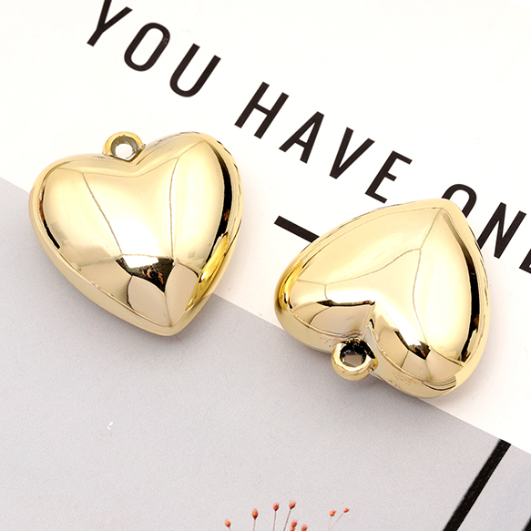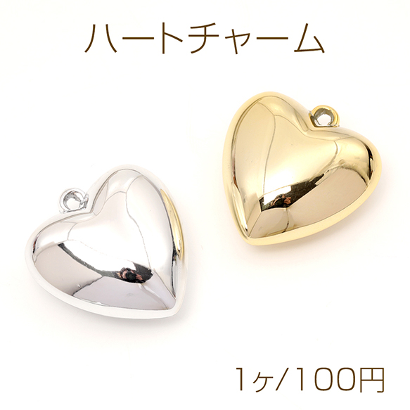 ハートチャーム 軽量 アクリル製 ぷっくりしたメタル調ハートチャーム ストラップ制作におすすめ 1カン 約35×36mm(1ケ)