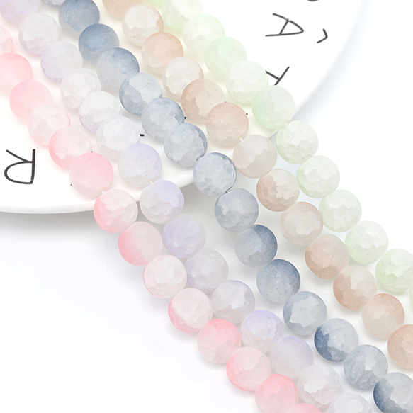 ガラスビーズ 丸玉 連売り ガラス連ビーズ ラウンドビーズ マットグラデーションカラー 約10mm (1連約80粒)