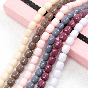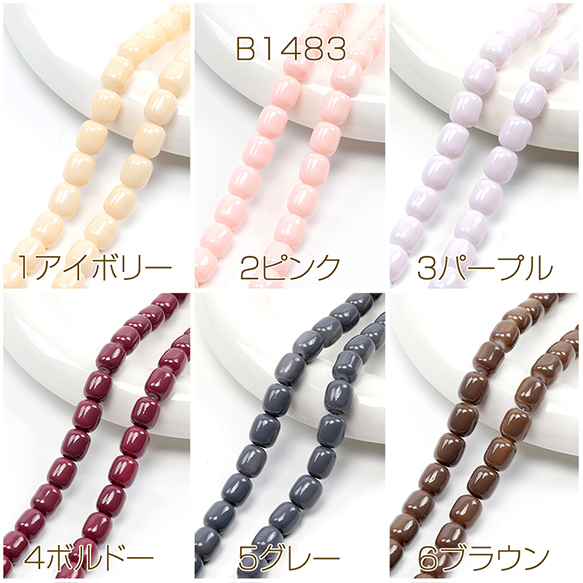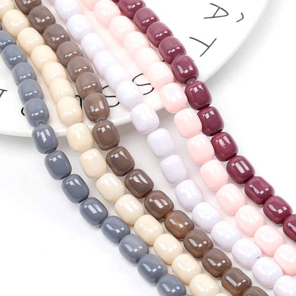 ガラスビーズ 連ビーズ 連売り セラミック調 陶器調ビーズ 円柱型 通し穴あり 約8×10mm (1連約80粒)