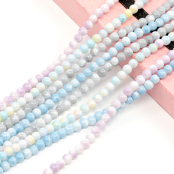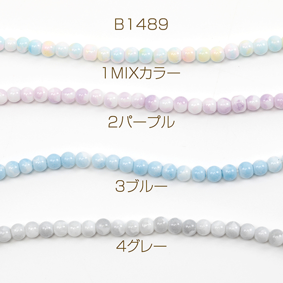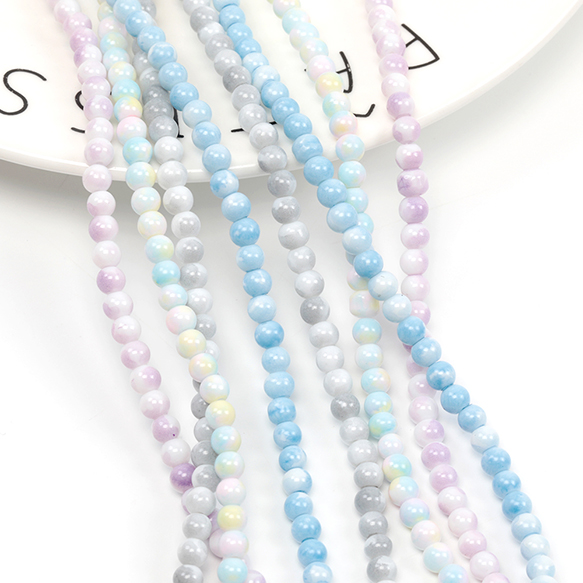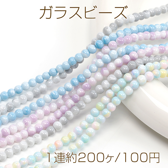 ガラスビーズ 連ビーズ 連売り 4mm丸玉ガラスビーズ ラウンドビーズ グラデーションカラー 約4mm (1連約200粒)