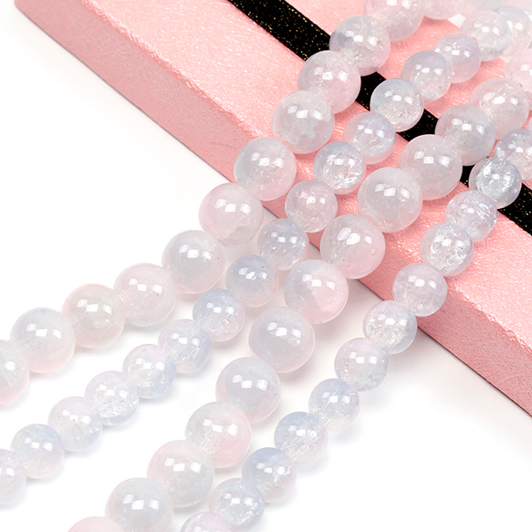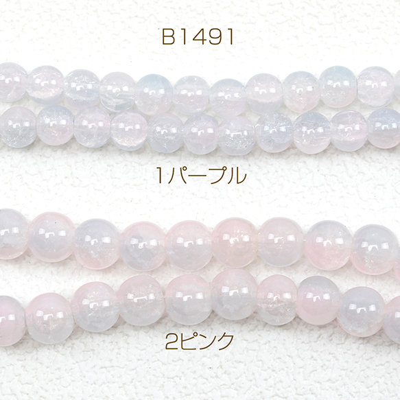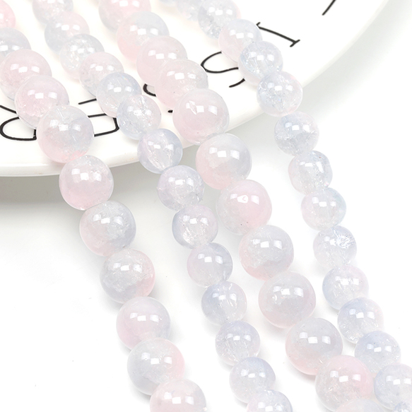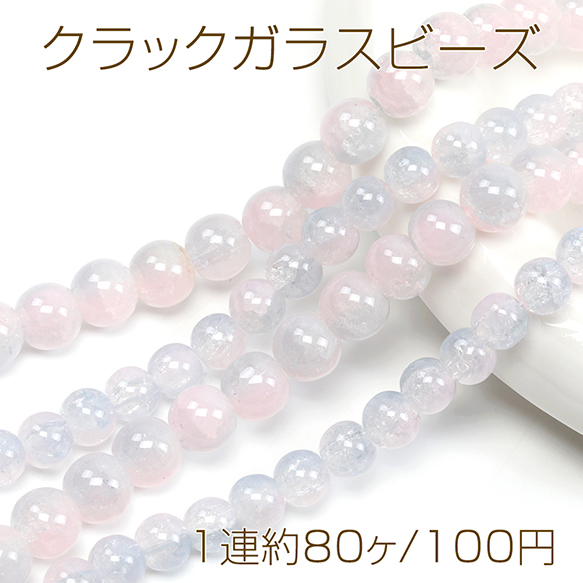 クラックガラスビーズ 連ビーズ 連売り 8mm 10mm丸玉ガラスビーズ ラウンドビーズ ブレスレット制作におすすめ 全2種