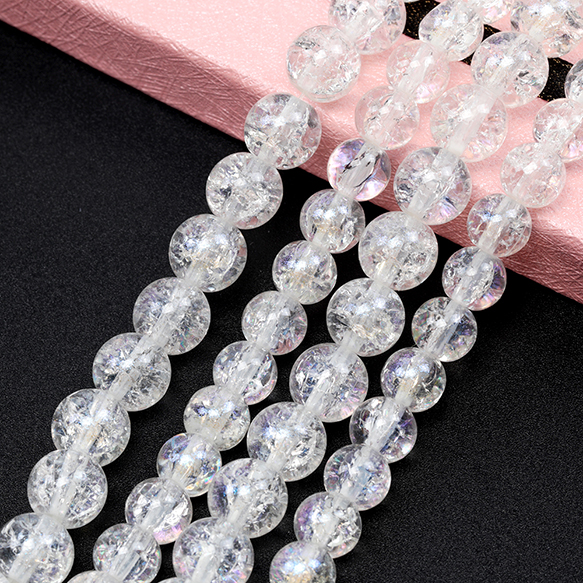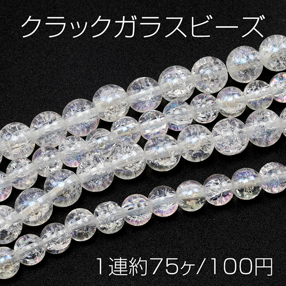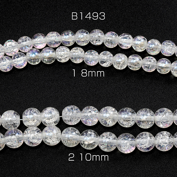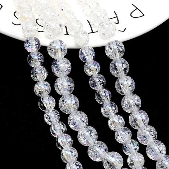 クラックガラスビーズ 連ビーズ 連売り クリアホワイト 8mm 10mm丸玉ガラスビーズ ラウンドビーズ 全2種