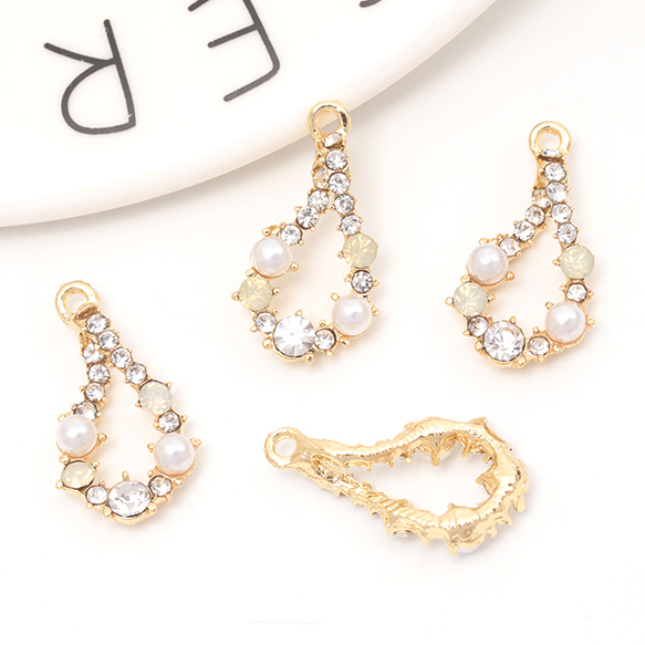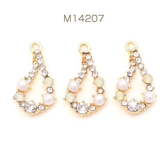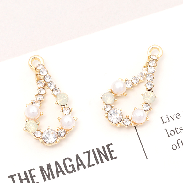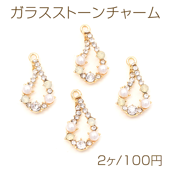 ガラスストーンチャーム しずく型 フレームチャーム パールとガラスストーン装飾 カン付き 約14×25mm (2ヶ)