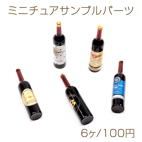 ミニチュアサンプルパーツ ワインボトル 樹脂製 食品サンプルデコパーツ ミニチュアフードパーツ 約10×44mm (6ヶ)