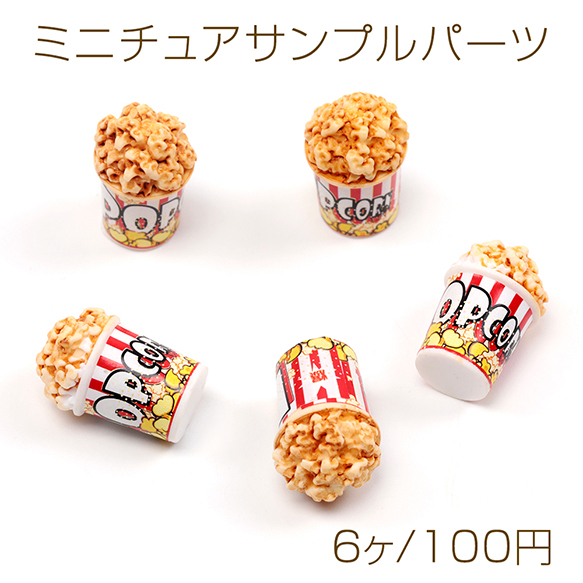 ミニチュアサンプルパーツ ポップコーン 樹脂製 食品サンプルデコパーツ ミニチュアフードパーツ 約13×19mm (6ヶ)