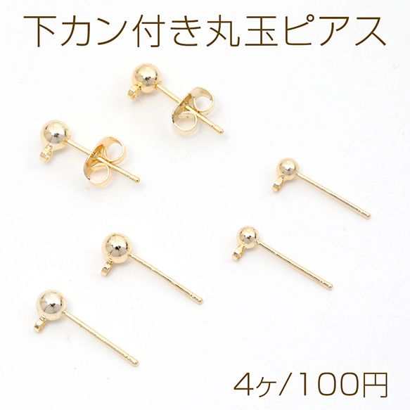 下カン付き丸玉ピアス 丸玉ポストピアス シンプルポストピアス 14kgp 色褪せしにくい カン付きピアス金具 約4㎜(4ヶ)