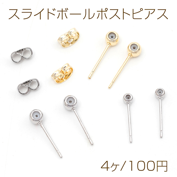 スライドボールポストピアス シリコンストッパーポストピアス ピアス金具 ピアスパーツ 色褪せしにくい 全3サイズ (4ヶ)