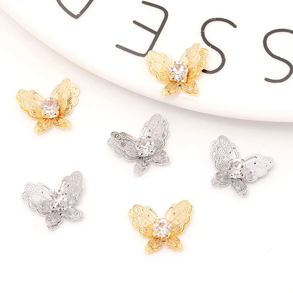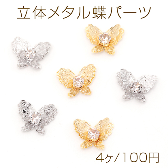 立体メタル蝶パーツ バタフライモチーフ 立体蝶パーツ ゴールド ロジウムカラー 全2色 約9×12mm(4ヶ)