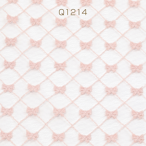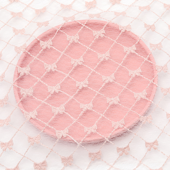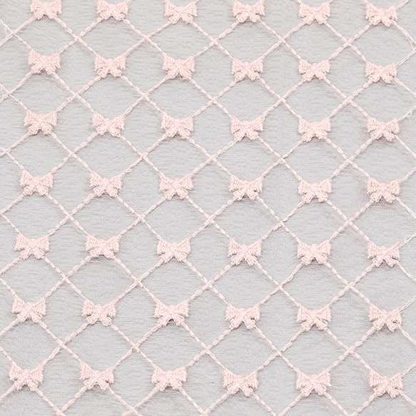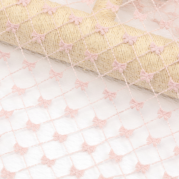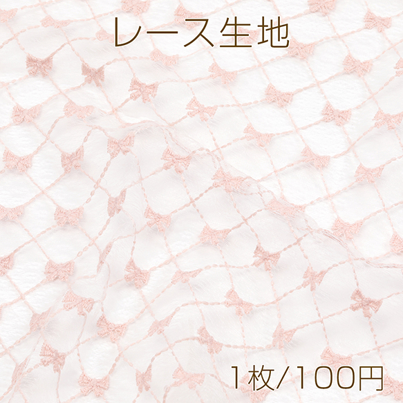 レース生地 カット売り ピンク刺繍リボン柄 はぎれ ハギレ 洋裁生地材料 約50×70cm (1枚)