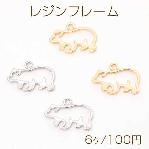 レジンフレーム くまモチーフ レジン空枠 セッティングチャーム クマ型レジン枠 1カン付き 約11×16mm (6ヶ)