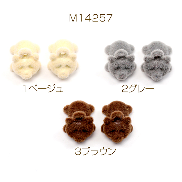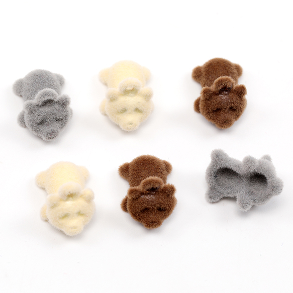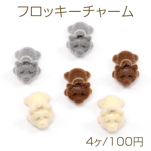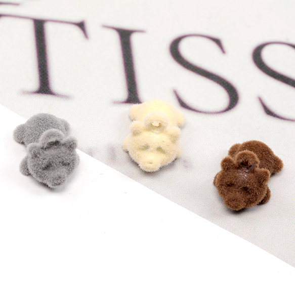 フロッキーチャーム 熊 くま クマ型チャーム テディベアチャーム アニマルチャーム カン付き 約9×13mm (4ヶ)