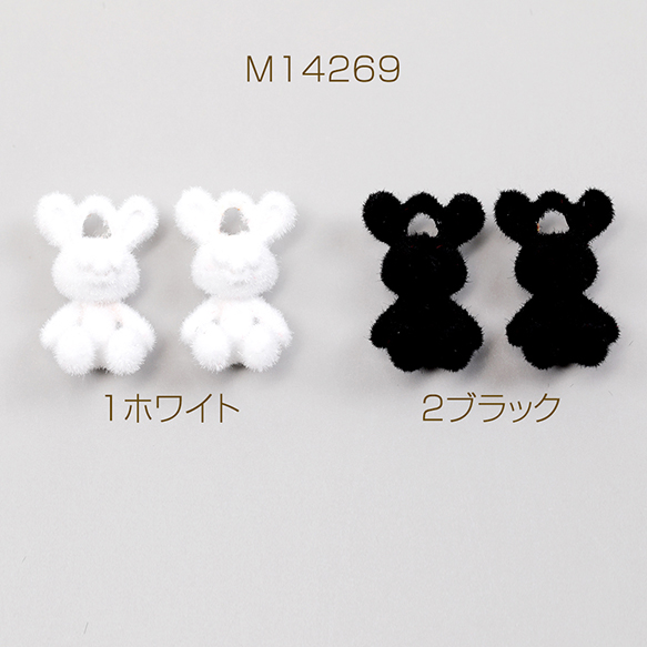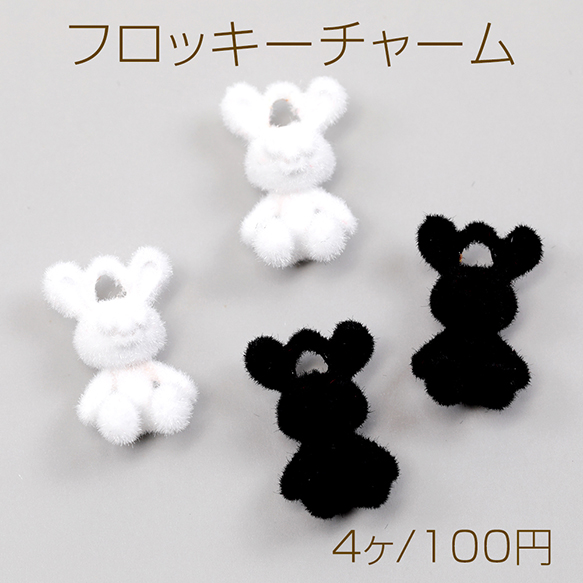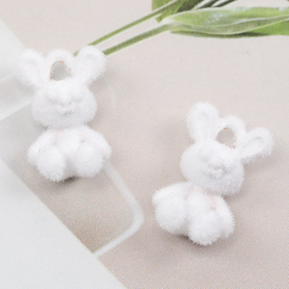 フロッキーチャーム 兔 うさぎ ウサギチャーム アニマルチャーム ラビットチャーム カン付き 約10×16mm (4ヶ)