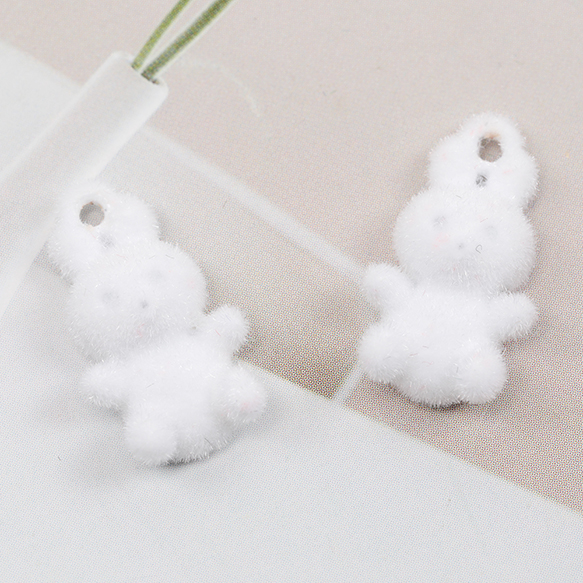 フロッキーチャーム 兔 うさぎ ウサギチャーム アニマルチャーム ラビットチャーム カン付き 約10×17mm (4ヶ)
