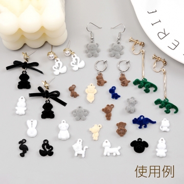 フロッキーチャーム 猫 ねこ キャット ネコチャーム ベルベット調アニマルチャーム カン付き 約14×16mm (4ヶ)