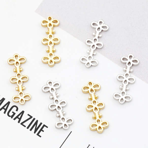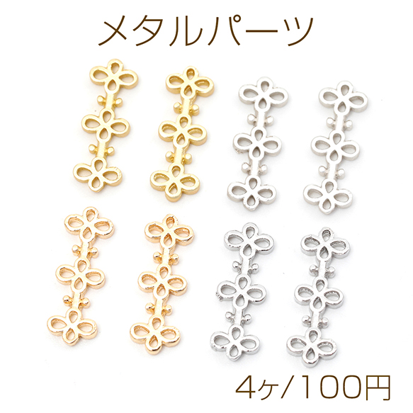 メタルパーツ フラワーパーツ メタルチャーム コネクターパーツ ジョイントパーツ つなぎパーツ 接続金具 約6×18mm(4ヶ)