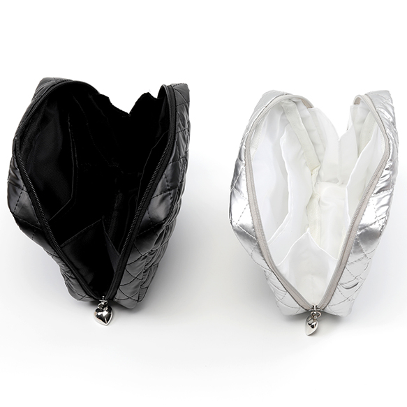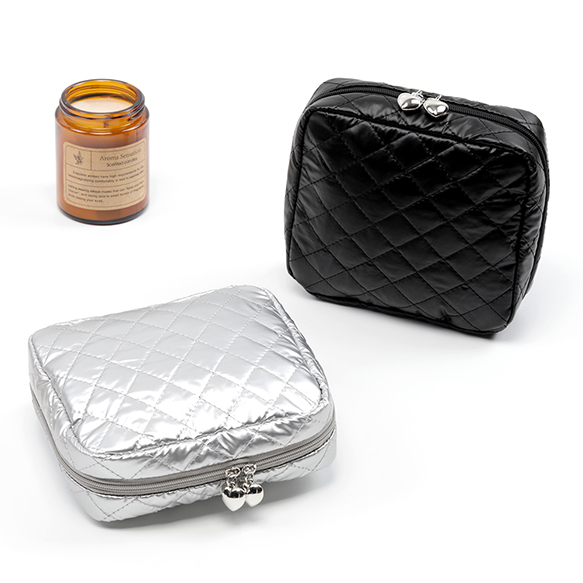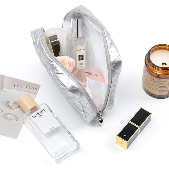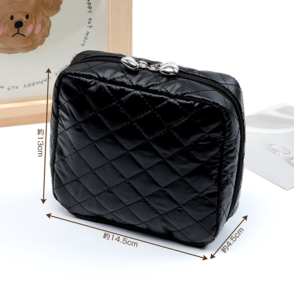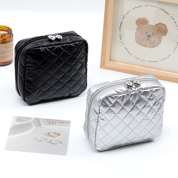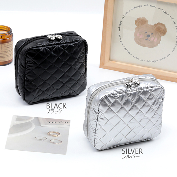 コスメポーチ キルティング コスメバッグ 化粧ポーチ 化粧バッグ 小物入れ 銀色 幅約14.5cm×高さ13cm×マチ4.5cm