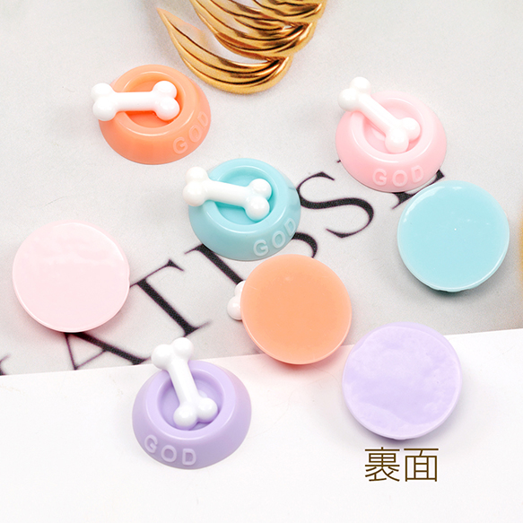 樹脂貼付けパーツ 骨ありフードボウルモチーフ ミニチュアドッグフード 樹脂パーツ 約23mm(6ヶ)