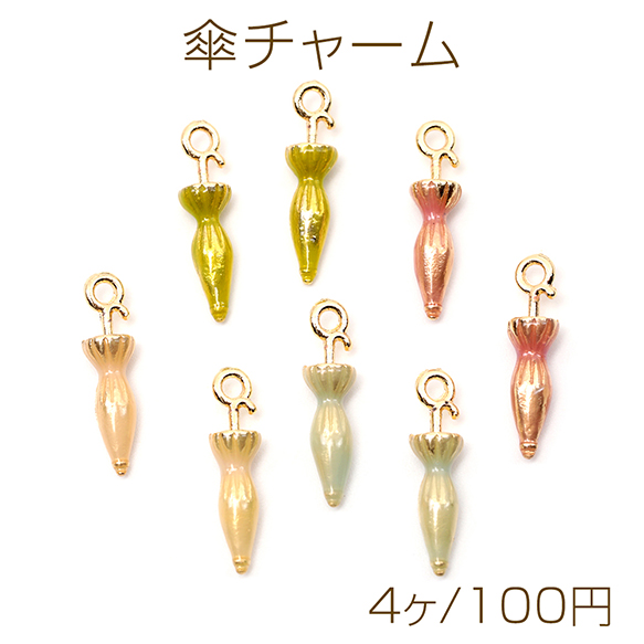 傘チャーム エポ加工 かさチャーム 傘型パーツ アンブレラチャーム 1カン付き 約4×17mm(4ヶ)