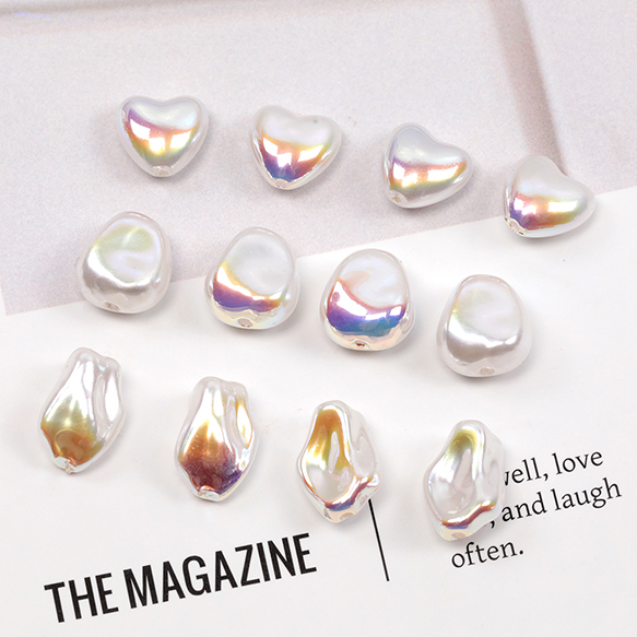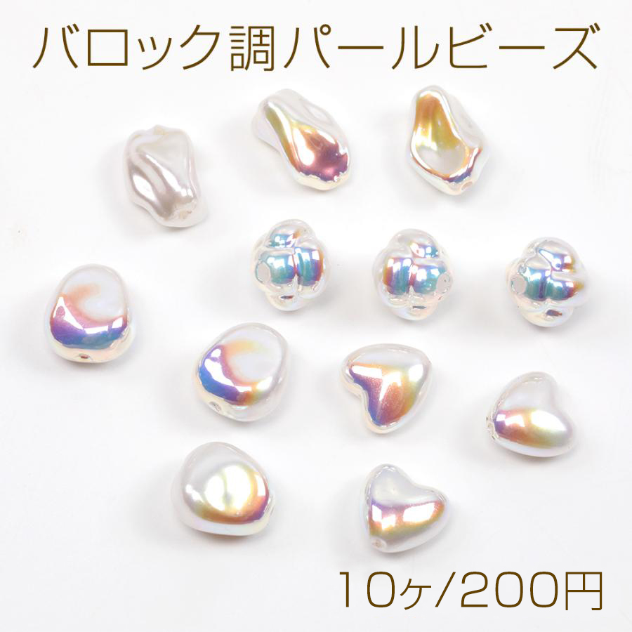 バロック調パールビーズ オーロラカラー加工 バロックビーズ キラキラ アクリルビーズ 多用途パールビーズ 全9種 (10ヶ)