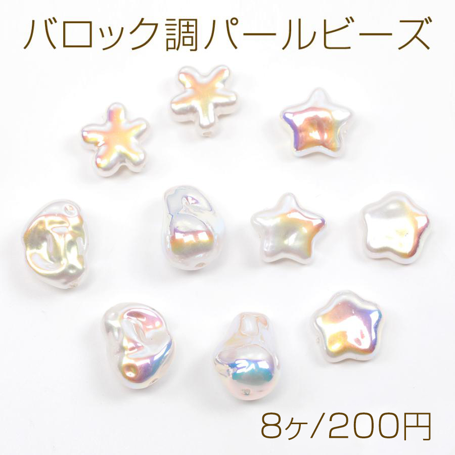 バロック調パールビーズ オーロラカラー加工 バロックビーズ キラキラ アクリルビーズ 多用途パールビーズ 全9種 (8ヶ)