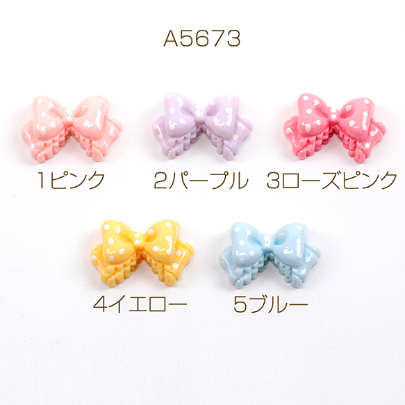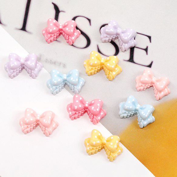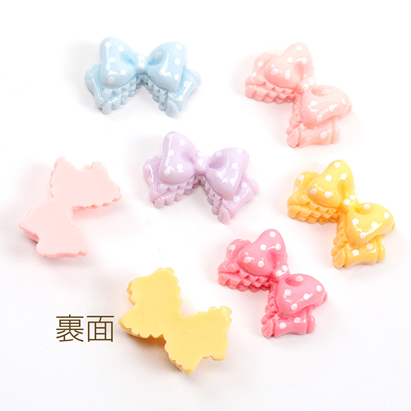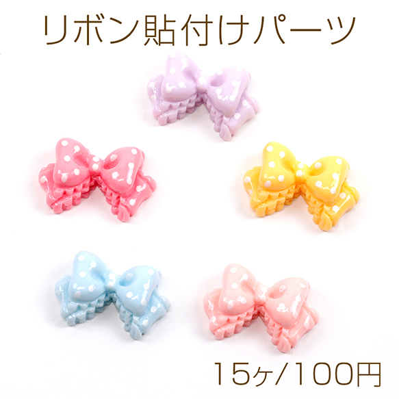 リボン貼付けパーツ リボン型 デコパーツ ふっくらりぼんデコパーツ ドット柄リボンパーツ 約11×18mm(15ヶ)