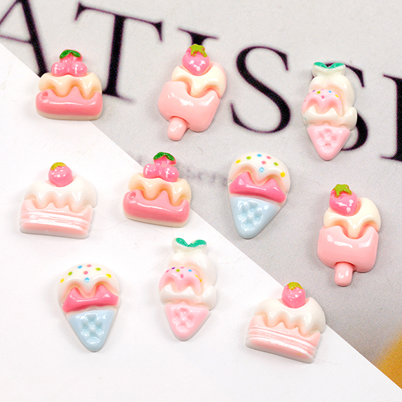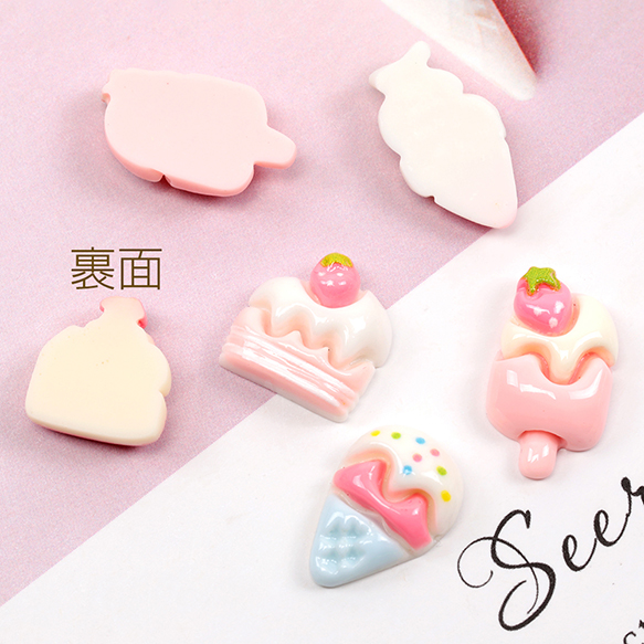 スイーツ貼付けパーツ ショートケーキ アイスクリーム 苺ケーキデコパーツ 食べ物デコパーツ 約11×15mm(15ヶ)