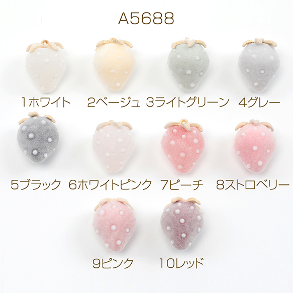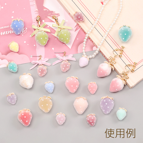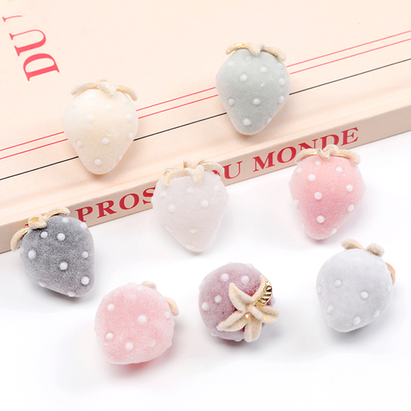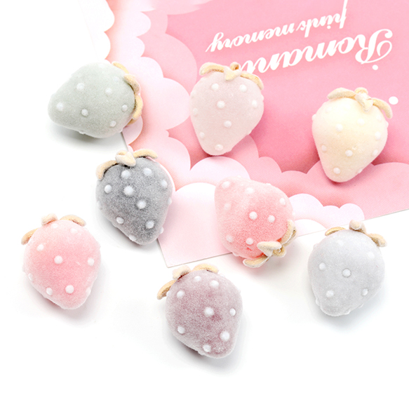 いちごチャーム フロッキー調 苺 イチゴチャーム ストロベリーチャーム 全10色 約18×24mm (2ヶ)