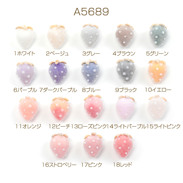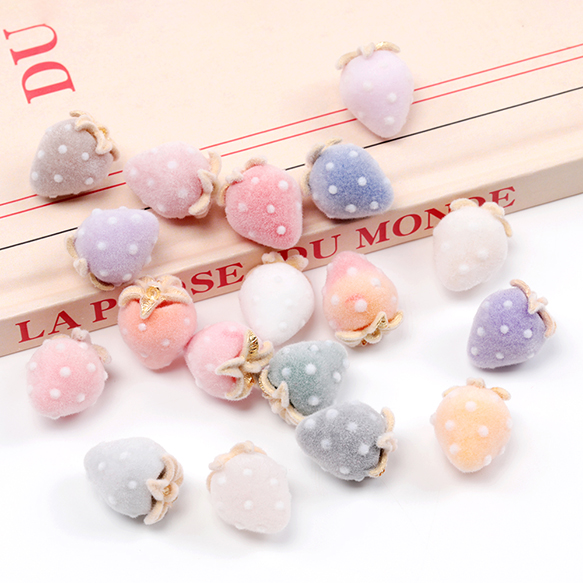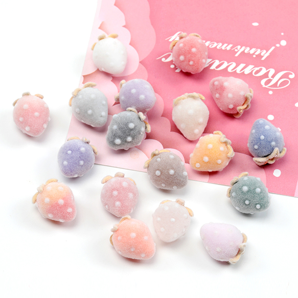 いちごチャーム フロッキー調 苺 イチゴチャーム ストロベリーチャーム 全18色 約12×16mm (2ヶ)