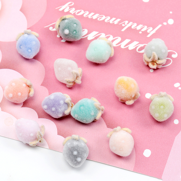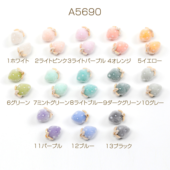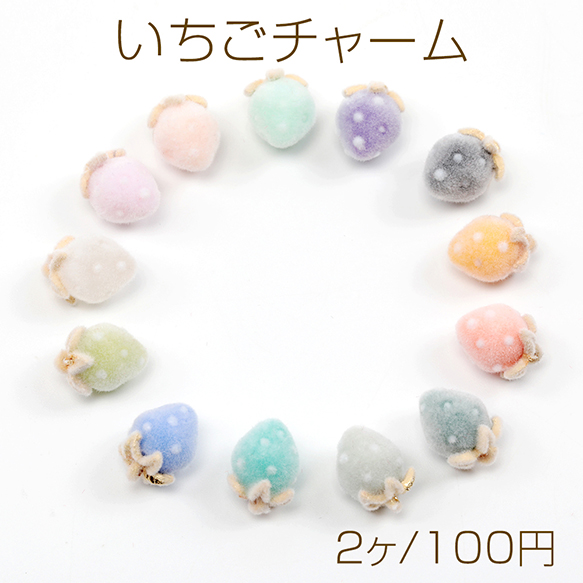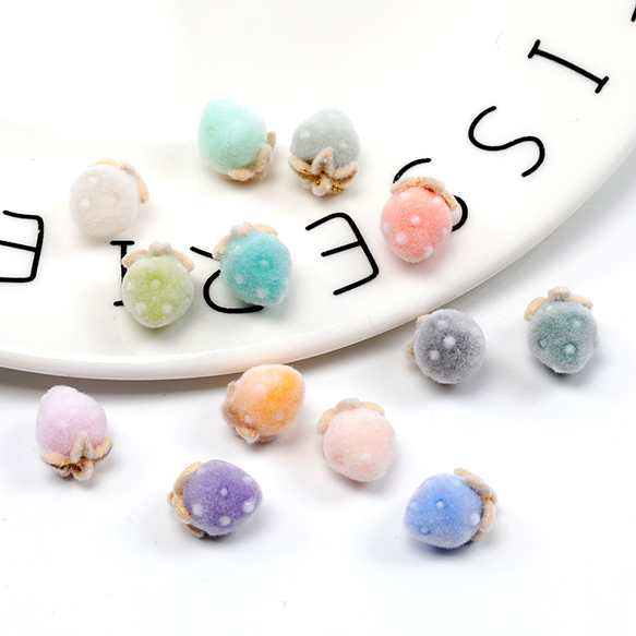 いちごチャーム フロッキー調 苺 イチゴチャーム ストロベリーチャーム 全13色 約8×12mm (2ヶ)