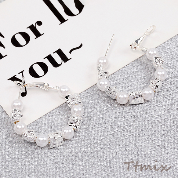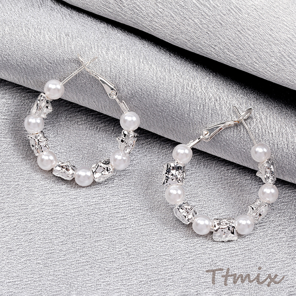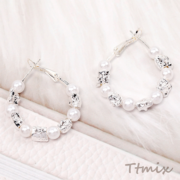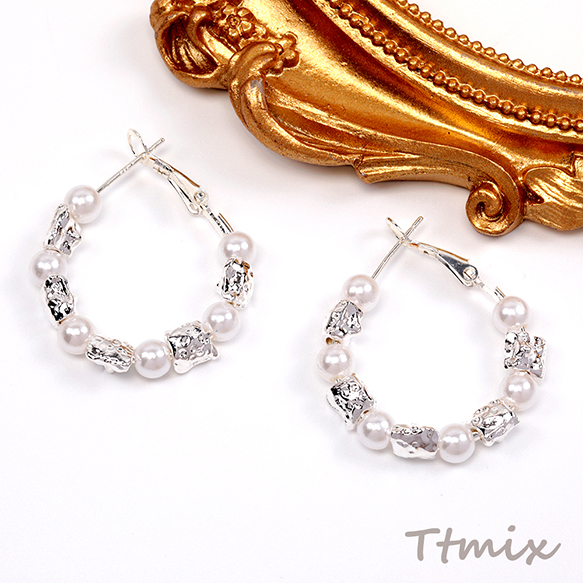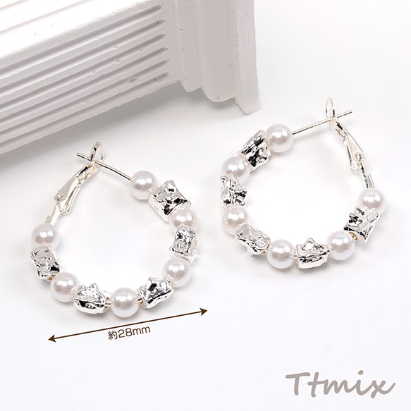 フープピアス パールビーズピアス 925シルバーポスト 約28mm (1ペア)