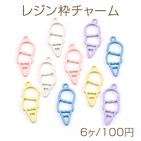 レジン枠 チャーム アイスクリーム 合金製 約8×21mm(6ヶ)
