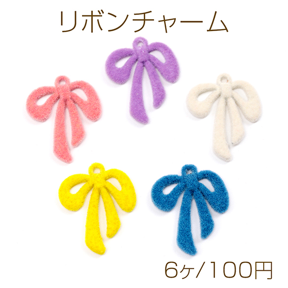 リボンチャーム フロッキーチャーム 合金製 約19×24mm(6ヶ)
