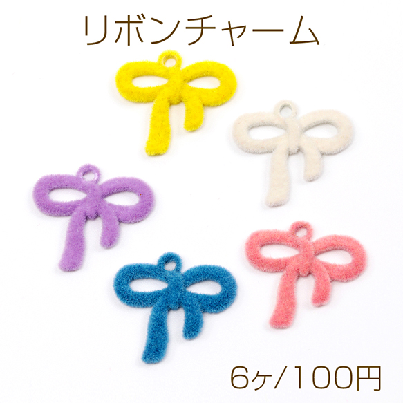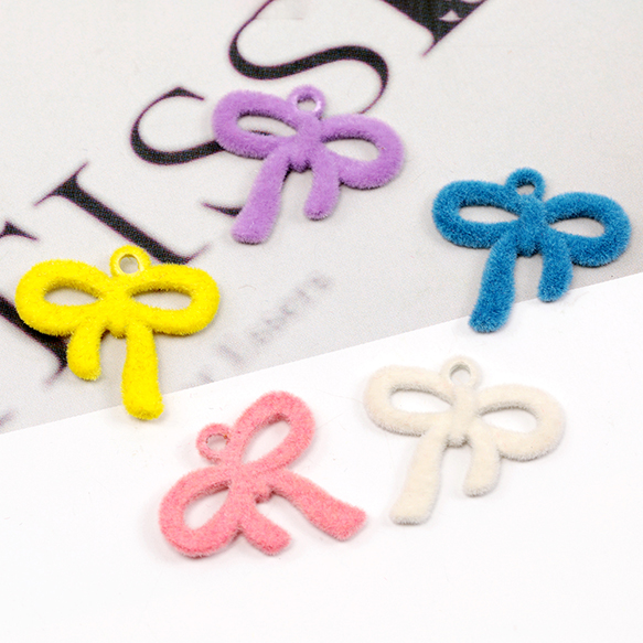 リボンチャーム フロッキーチャーム 合金製 約18×19mm(6ヶ)