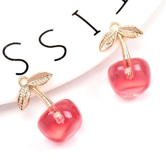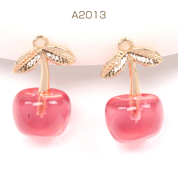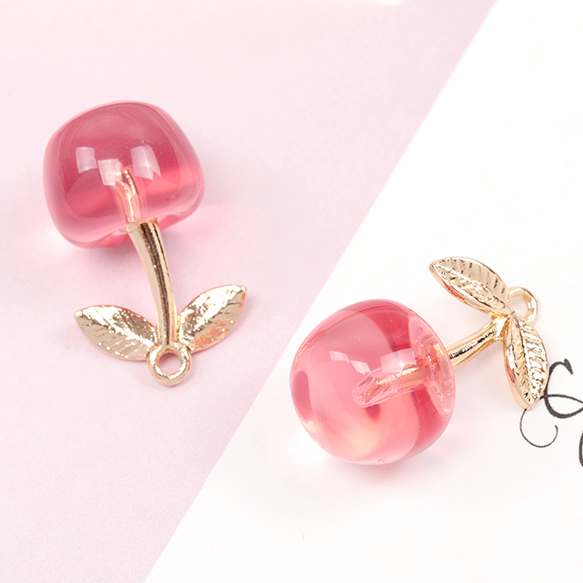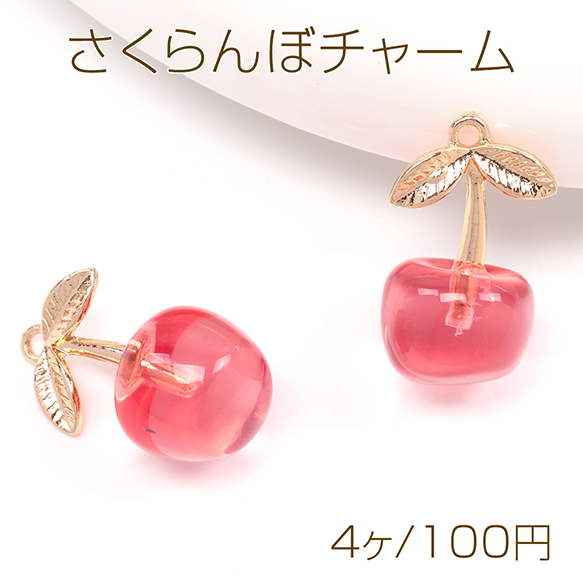 さくらんぼチャーム 樹脂さくらんぼチャーム チェリーチャーム 約13×24mm(4ヶ)