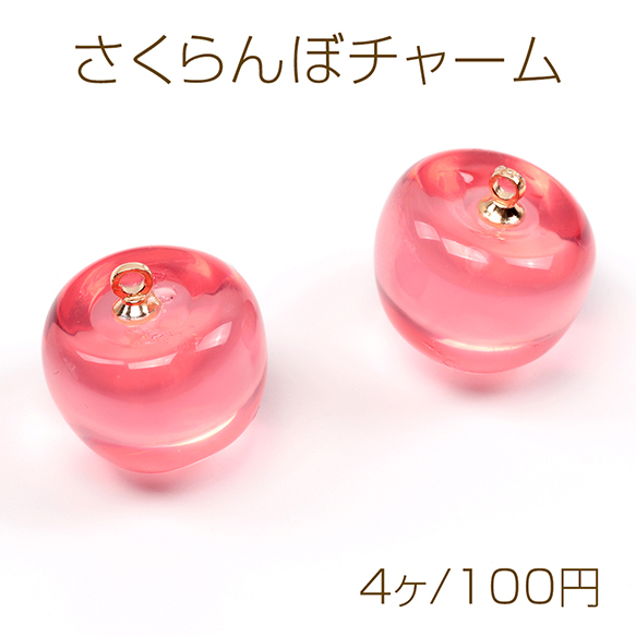 さくらんぼチャーム 樹脂さくらんぼチャーム チェリーチャーム 銅製 約13×13mm(4ヶ)