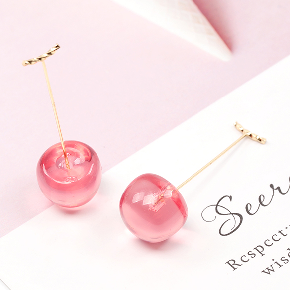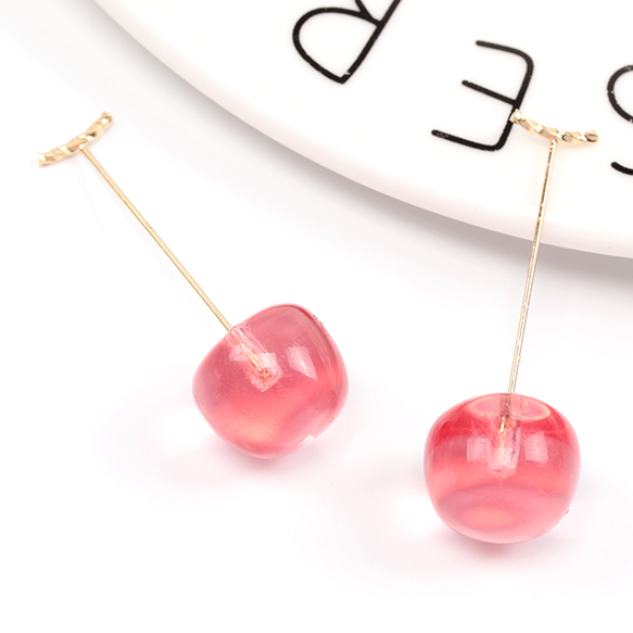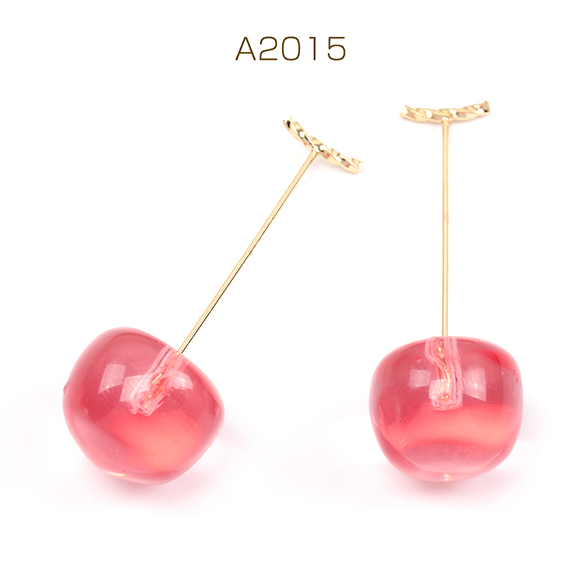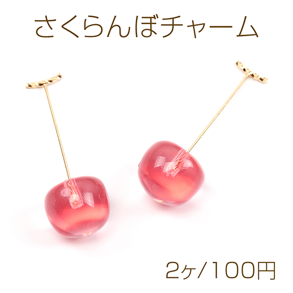 さくらんぼチャーム 樹脂さくらんぼチャーム チェリーチャーム 銅製 約13×38mm(2ヶ)