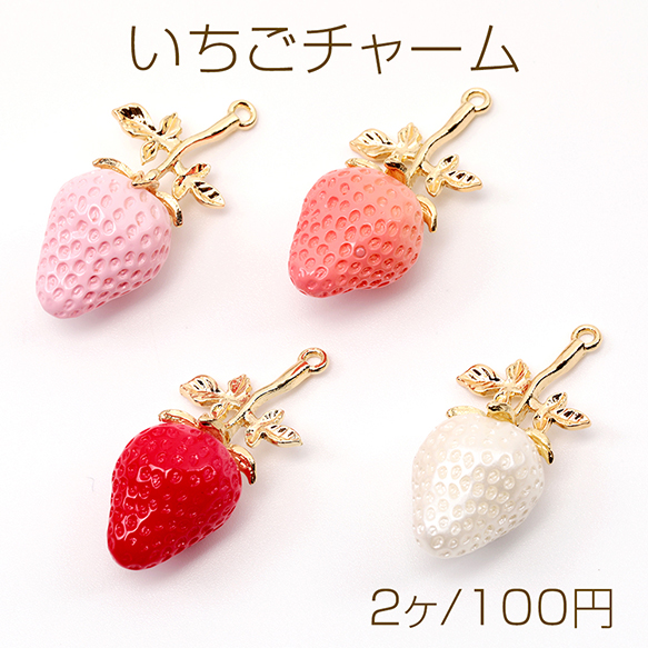 いちごチャーム イチゴ ストロベリー いちご 苺 チャーム フルーツ 約15×33mm(2ヶ)