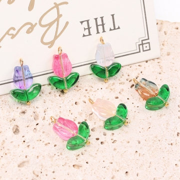 ガラスストーンチャーム 長方形 カン付き 約7×11mm(6ヶ)