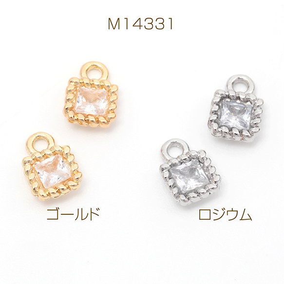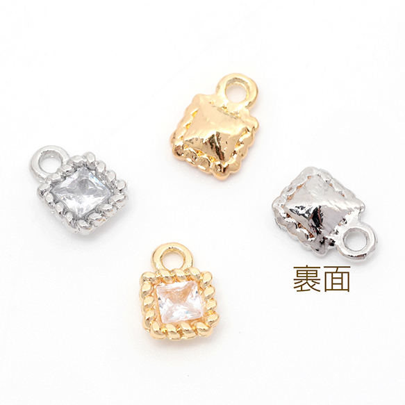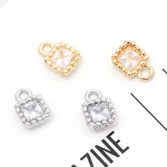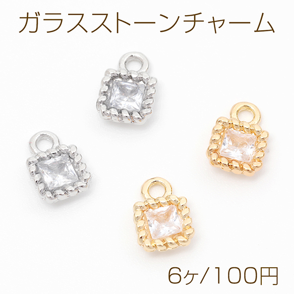 ガラスストーンチャーム 正方形 カン付き 約6×8mm(6ヶ)