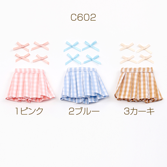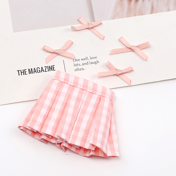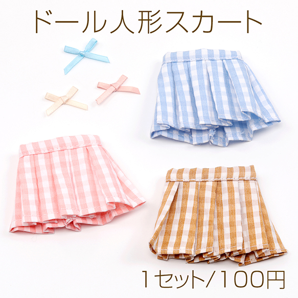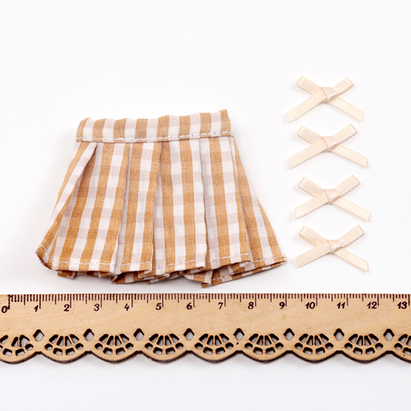 ドール人形スカート モールド―ル人形用スカート ミニ チェック柄 ミニリボン付き (1セット)