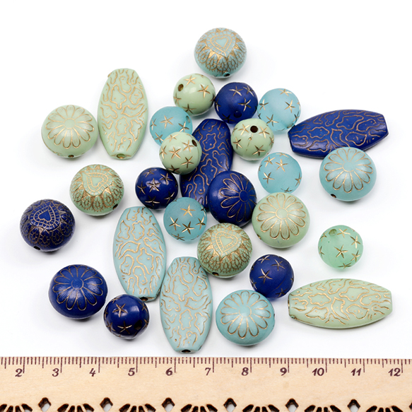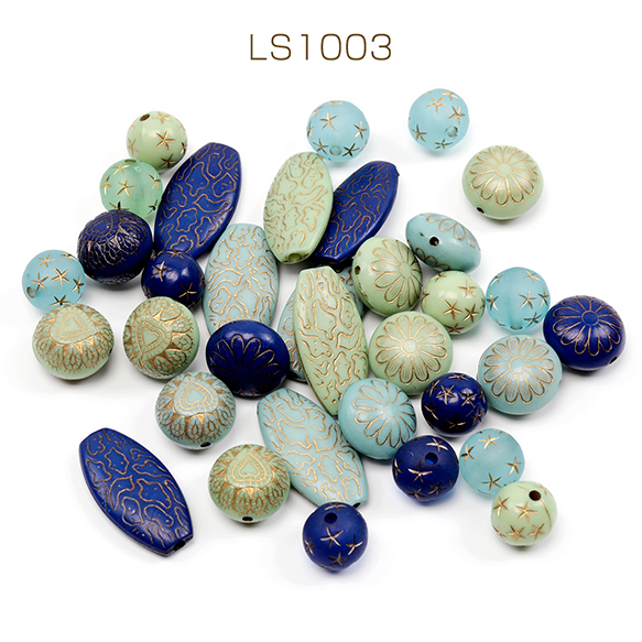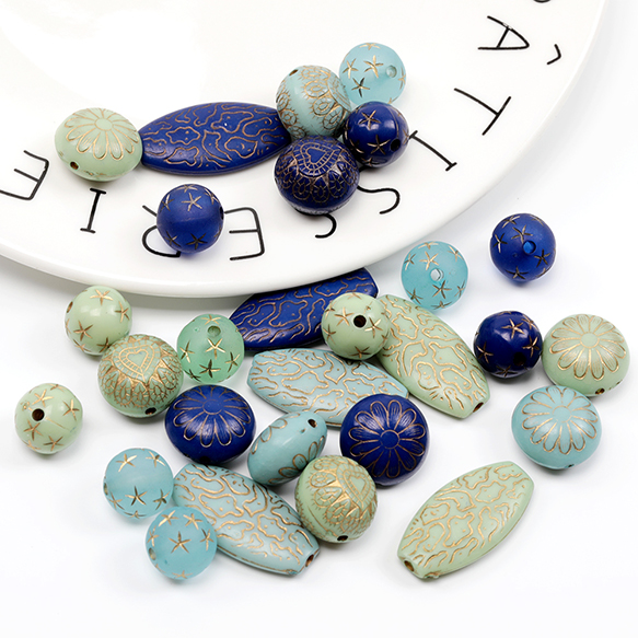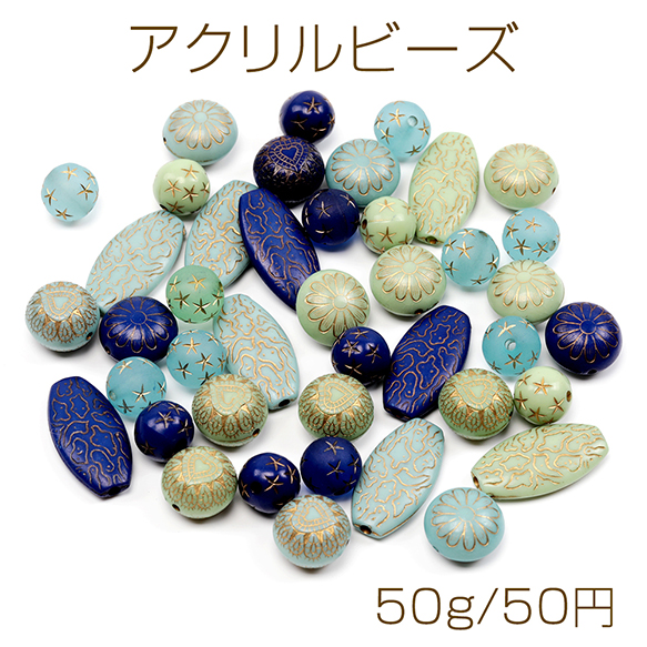 アクリルビーズ 模様入り カラーミックス (約50g)
